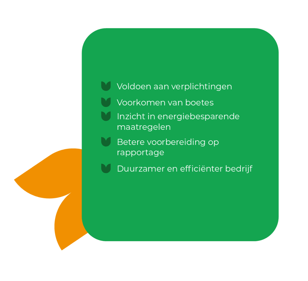 Deze verplichting houdt in dat bedrijven eens in de vier jaar moeten rapporteren welke energiebesparende maatregelen zij hebben genomen of nog gaan nemen. De overheid gebruikt dit om bedrijven te stimuleren energie te besparen en te verduurzamen.